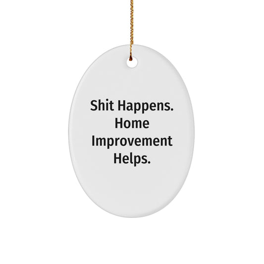 Funny Home Improvement Gifts, Oval Ornament, 'Shit Happens. Home Improvement Helps.' for Men, Women, Friends, Coworkers, Family, Christmas Unique Gifts from Home Improvement Enthusiasts