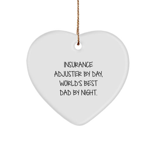 Insurance Adjuster Gifts for Men, Funny Heart Ornament by Day, World's Best Dad by Night, Christmas Unique Presents, Gifts from Friends, Family