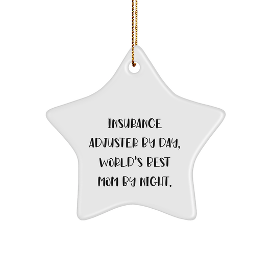 Insurance Adjuster Gifts, Funny Star Ornament for Christmas, 'Insurance Adjuster By Day, World's Best Mom By Night.' from Friends, Gifts for Insurance Adjuster By Day, Women, or Men