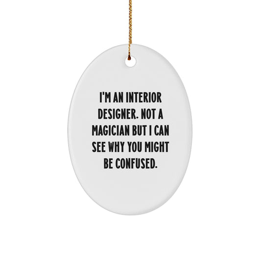 Interior Designer Gifts from Friends - Funny Oval Ornament for Christmas - 'I'm An Interior Designer. Not A Magician But I Can See Why You Might Be Confused.'
