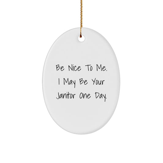 Funny Janitor Gifts from Friends - 'Be Nice To Me. I May Be Your Janitor' Oval Ornament for Men, Women, and Family
