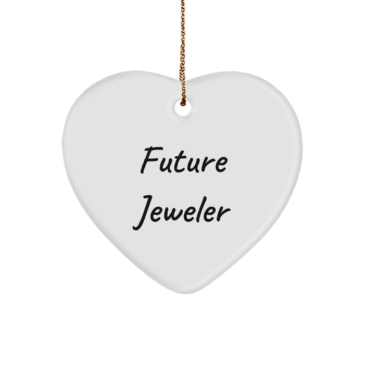 Funny Future Jeweler Gifts from Men for Women - Heart Ornament, Inspirational Quote, White Color, Christmas Unique Gifts