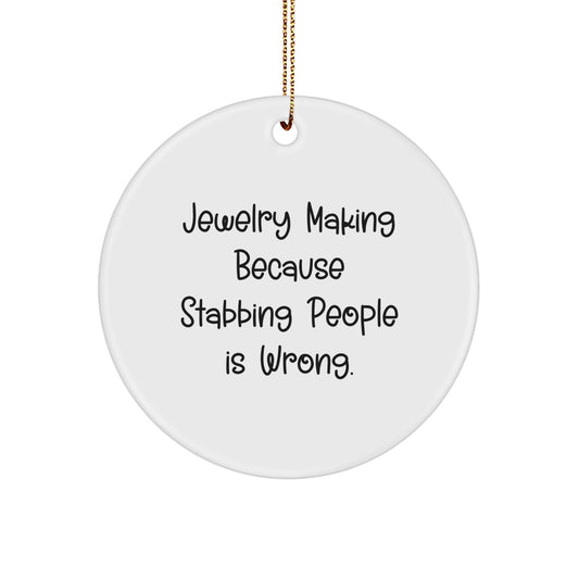 Funny Jewelry Making Circle Ornament Gifts from Friends for Christmas, 'Jewelry Making Because Stabbing People Is Wrong.'