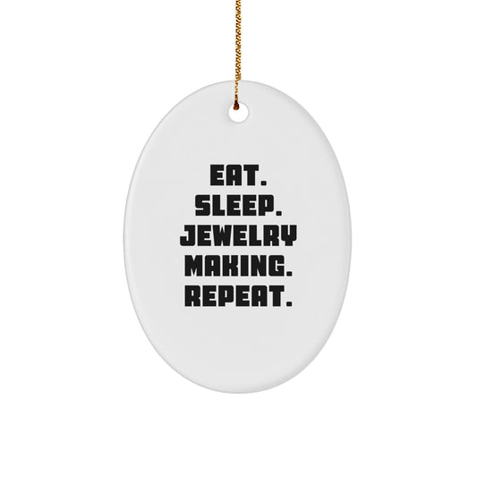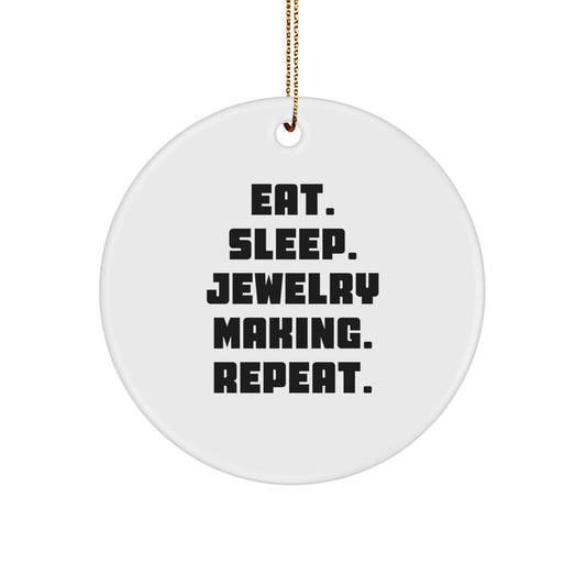 Funny Jewelry Making Gifts for Friends, Coworkers, or Family - Eat. Sleep. Jewelry Making. Repeat. White Circle Ornament, Perfect for Christmas