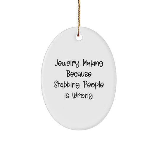 Funny Jewelry Making Gifts for Women, Oval Ornament with 'Jewelry Making Because Stabbing People Is Wrong.' Quote, Christmas Unique Presents from Friends