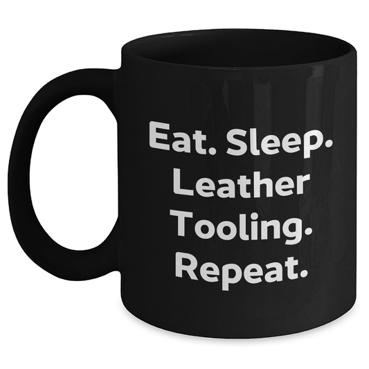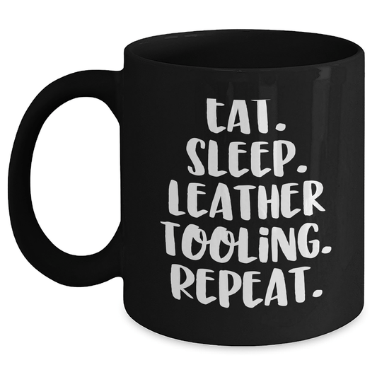 Funny Leather Tooling Gifts - Eat. Sleep. Leather Tooling. Repeat. Black Coffee Mug for Men or Women, Father's Day Unique Gifts from Friends, Coworkers, Family