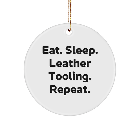 Leather Tooling Gifts for Men, Women, Friends, and Family - Eat. Sleep. Leather Tooling. Repeat. - Circle Ornament, Christmas Unique Gifts from Friends