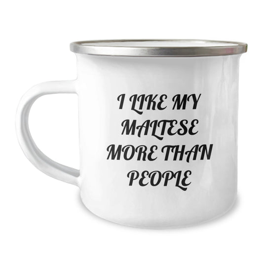 Maltese Dog Lovers Gifts from Family Friends for Birthday Unique Celebrations, I Like My Maltese More Than People Funny Quote Camping Mug, 12 oz Stainless Steel Enamel Finish