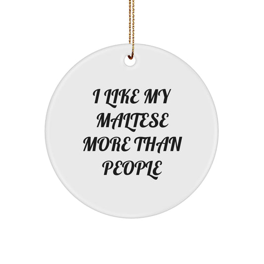 Maltese Dog Lovers' Christmas Unique Gift - 'I Like My Maltese More Than People' Circle Ornament Gifts from Family, Friends, or Coworkers