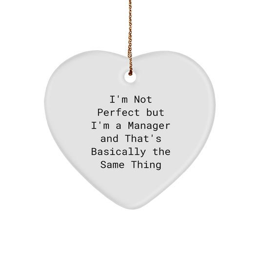 Funny Manager Gifts, 'I'm Not Perfect But I'm A Manager And That's Basically The Same Thing' Heart Ornament, White, for Men, Women, Friends, Coworkers, Family at Christmas