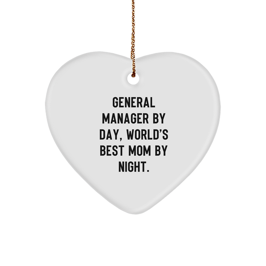 General Manager Gifts from Friends - Heart Ornament for Christmas, 'General Manager By Day, World's Best Mom By Night.'