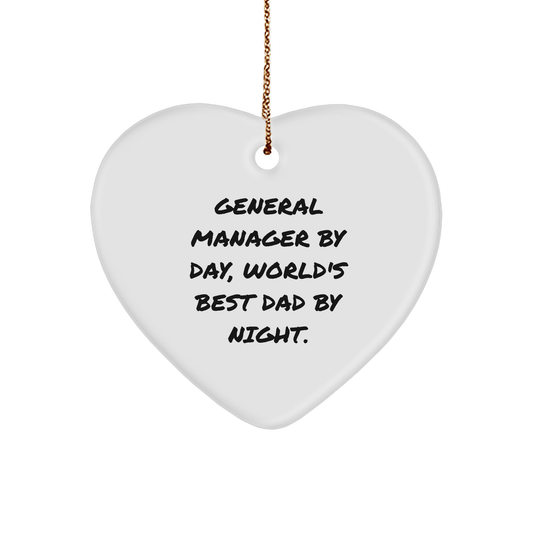 General Manager Gifts, Heart Ornament, Funny Quote 'By Day, World's Best Dad By Night.' Gifts from General Manager to Family