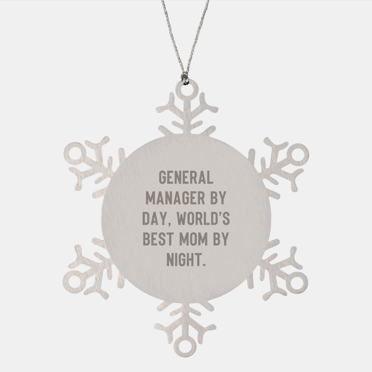 General Manager Gifts, Snowflake Ornament, Funny Quote Christmas Ornament, Gifts from Family, General Manager by Day, World's Best Mom by Night