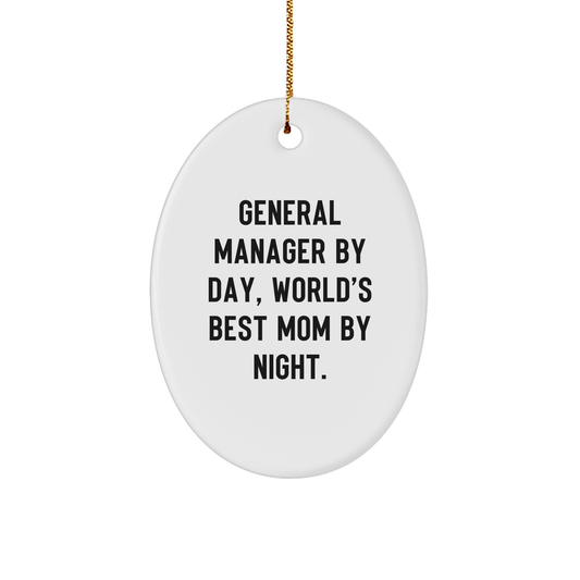 Gifts from General Manager Friends, General Manager By Day, World's Best Mom By Night. Oval Ornament for Christmas, General Manager Gifts