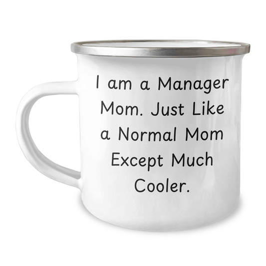 Manager Mom's Cool Camping Mug, Funny Gifts for Father's Day from Manager to Men, 12 oz Stainless Steel with Enamel Finish, 'I Am A Manager Mom. Just Like A Normal Mom Except Much Cooler.'