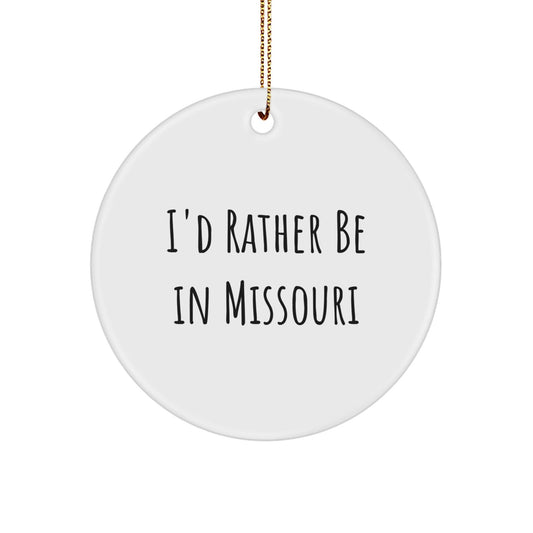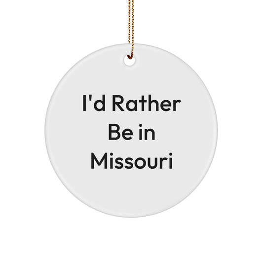 Missouri Enthusiasts Gifts from Men to Family - Funny Circle Ornament with I'd Rather Be In Missouri Quote, Unique Christmas Unique Gifts