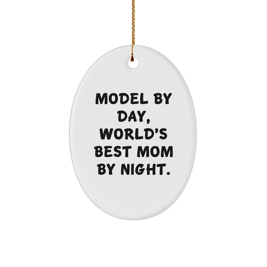 Model Gifts from Men, Women, Friends, Coworkers, Family - Model By Day, World's Best Mom By Night Oval Ornament, Funny Christmas Unique Gift