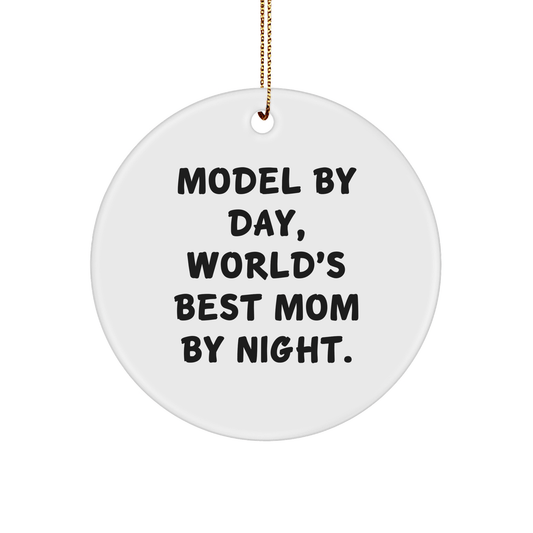 Funny Model Gifts: Circle Ornament with 'Model By Day, World's Best Mom By Night.' Quote, Ideal Gifts from Mom to Friends, Family, or Coworkers for Christmas