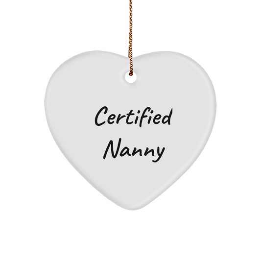 Funny Nanny Gifts from Men to Christmas Heart Ornament for Nanny, 'Certified Nanny' Quote, Unique Gifts for Nanny