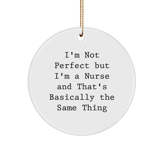 Funny Nurse Gifts from Friends for Christmas Circle Ornament - I'm Not Perfect But I'm A Nurse And That's Basically The Same Thing, White, 2.75'' Tall