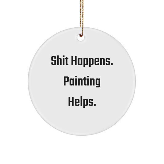 Funny Painting Circle Ornament Gifts from Friends - Shit Happens. Painting Helps. - Unique Christmas Memorable Presents for Painting Enthusiasts