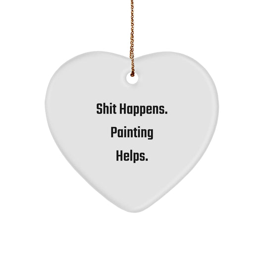 Funny Painting Gifts for Friends, 'Shit Happens. Painting Helps.', Heart Ornament, Christmas Unique Gifts from Friends for Painting Enthusiasts