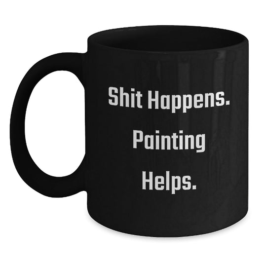 Funny Painting Gifts for Friends - Camping Mug with 'Shit Happens. Painting Helps.' - Graduation Unique Gifts from Men to Women