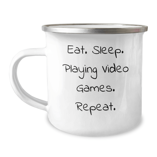 Funny Gifts from Friends for Playing Video Games Lovers - Eat. Sleep. Playing Video Games. Repeat. Camping Mug for Dad's Special Day
