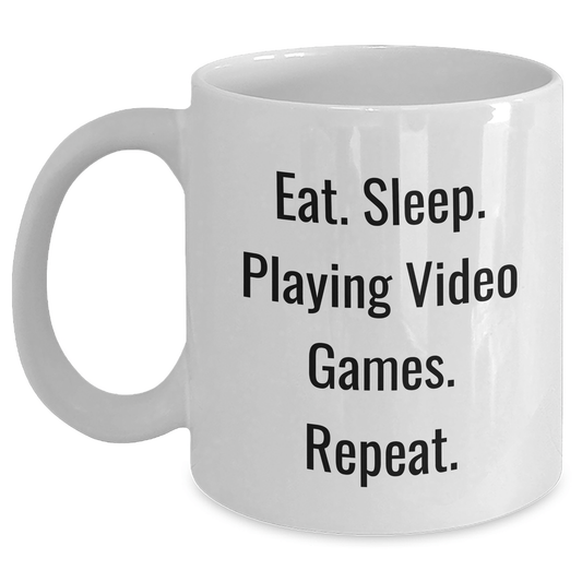 Funny Playing Video Games Gifts from Friends and Family on Father's Day - Eat. Sleep. Playing Video Games. Repeat. White Coffee Mug