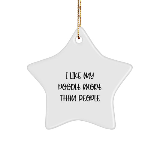 Poodle Dog Star Ornament, I Like My Poodle More Than People Funny Quote, Gifts from Men for Poodle Dog, Christmas Unique Presents