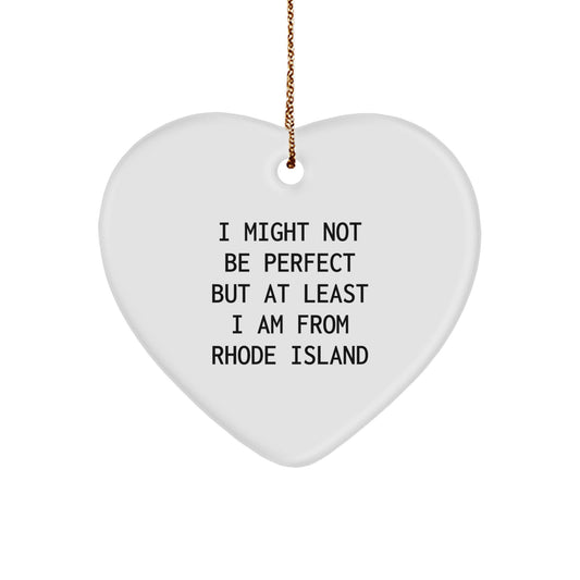 Rhode Island Proud Heart Ornament, 'I Might Not Be Perfect But At Least I Am From Rhode Island' Funny Quote Gifts from Rhode Island Enthusiasts for Friends, Family, and Coworkers
