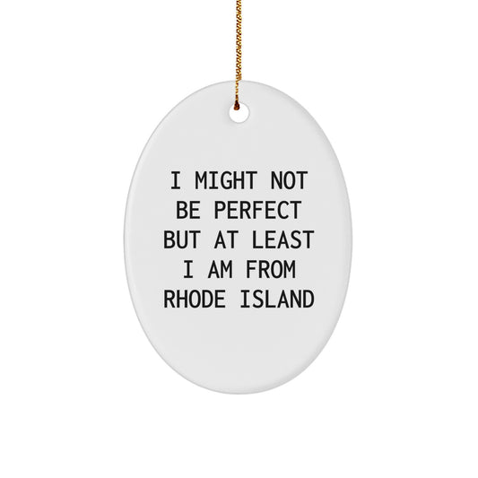 Rhode Island Oval Ornament, 'I Might Not Be Perfect But At Least I Am From Rhode Island' Funny Christmas Unique Gift for Friends and Family from Rhode Island