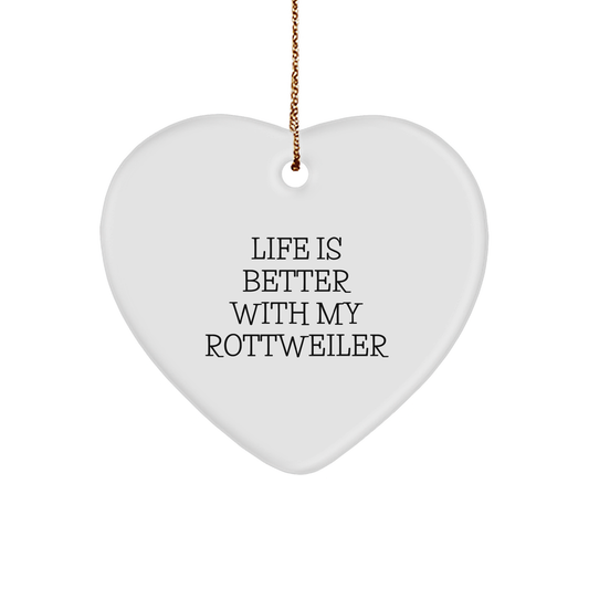 Rottweiler Dog Gifts, Funny Quote Life Is Better, Heart Ornament for Him Her Friends Family Christmas Unique Gifts from Men Women