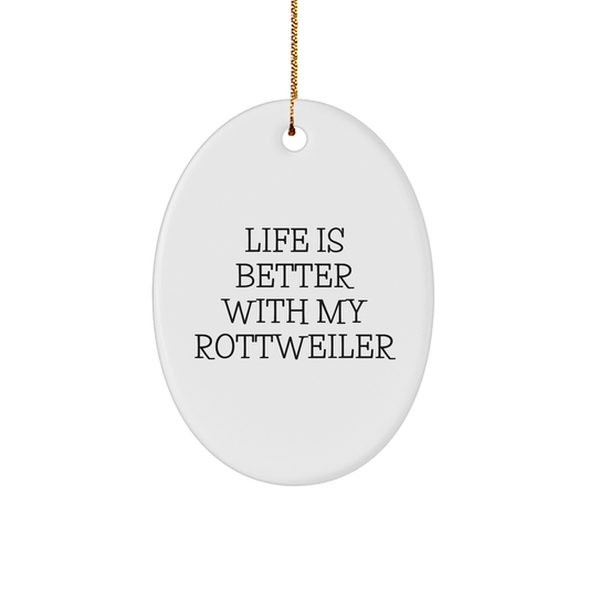 Rottweiler Dog Lovers' Christmas Oval Ornament Gifts from Family, 'Life Is Better With My Rottweiler' Quote, Unique Present for Friends, Coworkers, or Relatives