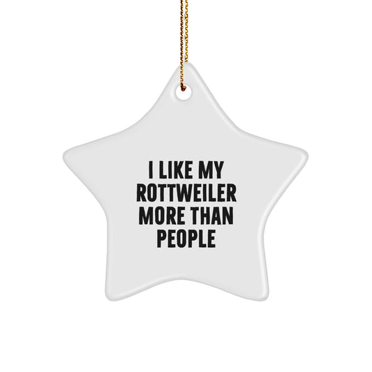 Rottweiler Dog Lovers' Funny Christmas Unique Gifts from Friends, Star Ornament for Rottweiler Dog, I Like My Rottweiler More Than People, Unique Holiday Presents for Rottweiler Dog Owners