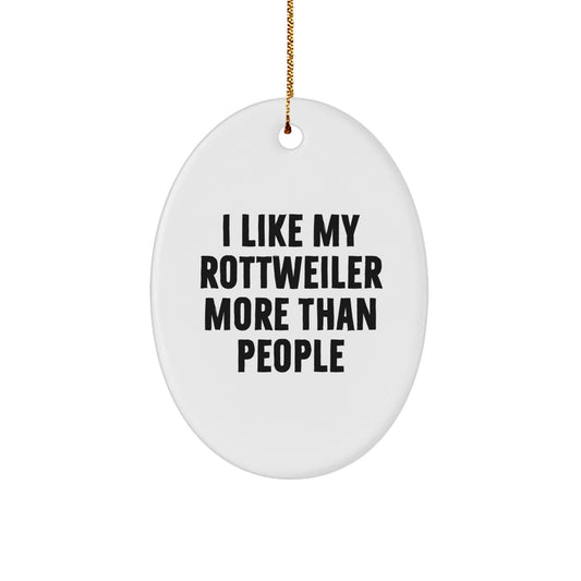 Rottweiler Dog Lovers' Funny Oval Ornament Gifts from Friends for Christmas, 'I Like My Rottweiler More Than People', Durable MDF with High-Gloss Finish
