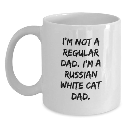 Funny Russian White Cat Dad Gifts, White Coffee Mug for Birthday, 'I'm Not A Regular Dad. I'm A Russian White Cat Dad.' Quote, Gifts from Men to Russian White Cat Lovers
