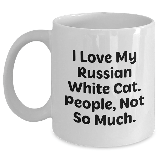 Funny Russian White Cat Lover Gifts for Friends, Coworkers, or Family - Two Tone Coffee Mug 'I Love My Russian White Cat. People, Not So Much.'