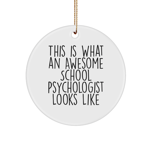 Funny School Psychologist Gifts from Friends, Inspirational 'This Is What An Awesome School Psychologist Looks Like' Circle Ornament for Christmas