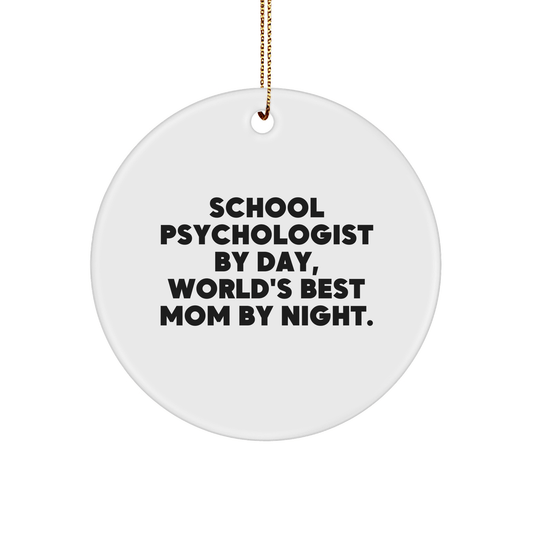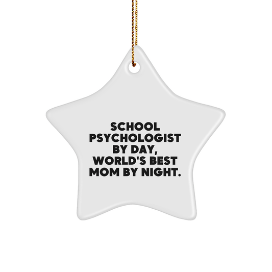 Funny School Psychologist Gifts from Mom: Star Ornament for Christmas, 'School Psychologist By Day, World's Best Mom By Night.'