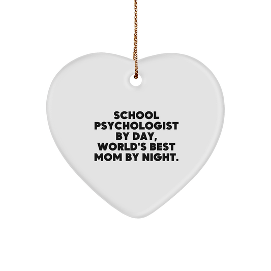 Funny School Psychologist Gifts - Heart Ornament for Christmas - 'School Psychologist By Day, World's Best Mom By Night.'
