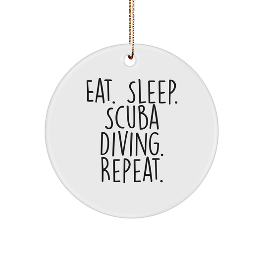 Scuba Diving Gifts from Friends for Men Eat. Sleep. Scuba Diving. Repeat. Circle Ornament, White, Christmas Unique