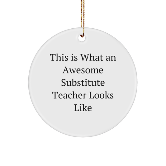 Funny Substitute Teacher Gifts from Friends, Circle Ornament for Christmas, 'This Is What An Awesome Substitute Teacher Looks Like'