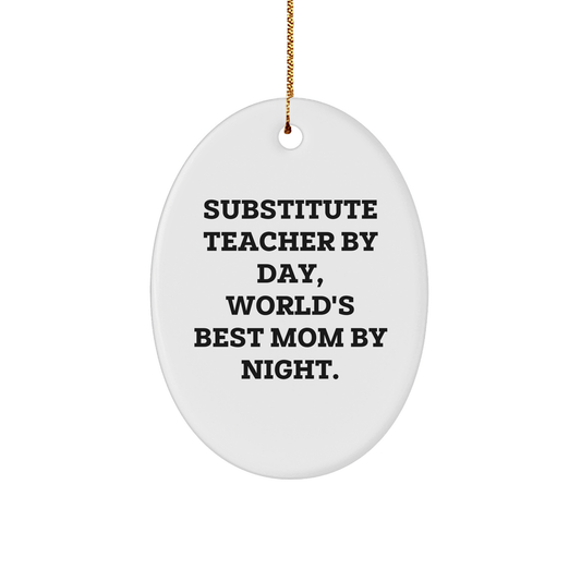 Funny Substitute Teacher Gifts - 'Substitute Teacher By Day, World's Best Mom By Night.' Oval Ornament, Christmas Unique Gifts for Substitute Teachers from Family