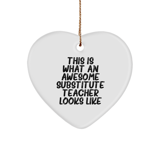Gifts from Friends for Substitute Teachers, Heart Ornament, Funny Quote, Christmas Unique Gifts