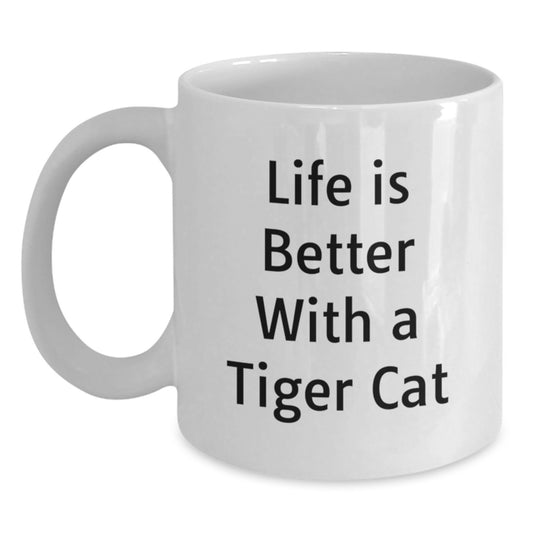 Funny Tiger Cat Gifts from Friends for Graduation Unique Tiger Cat White Coffee Mug, Life Is Better With A Tiger Cat