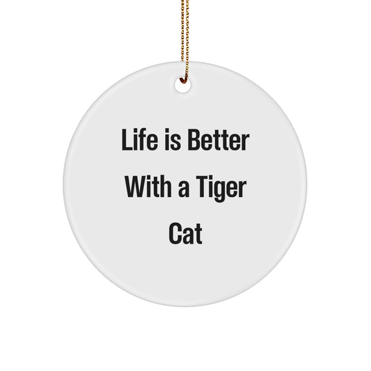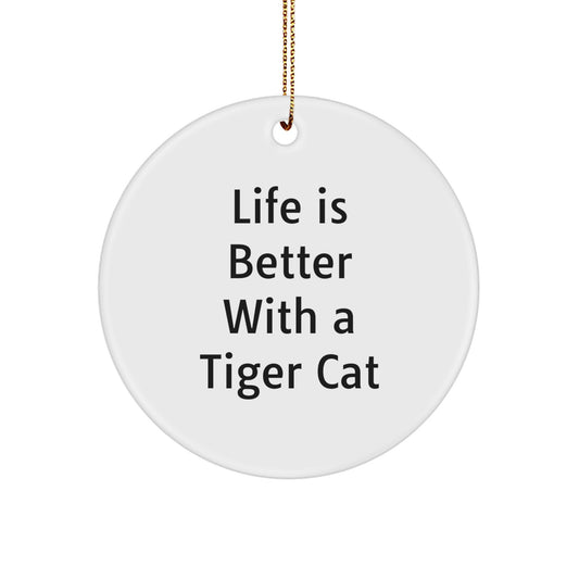 Tiger Cat Circle Ornament, Life Is Better Gifts from Friends, Women, Family, and Coworkers, Funny Christmas Unique Gifts for Tiger Cat Enthusiasts