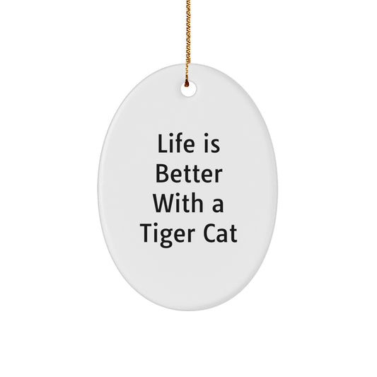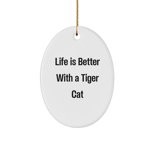 Funny Tiger Cat Gifts from Friends for Christmas - Oval Ornament with 'Life Is Better With A Tiger Cat' Quote