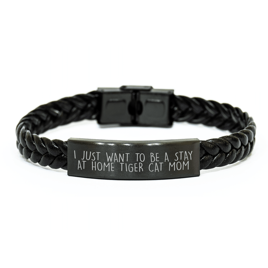 Funny Tiger Cat Mom's Gift, Interlaced Leather Bracelet for Men, Unique Father's Day Presents from Friends, 'I Just Want To Be A Stay At Home Tiger Cat Mom' Quote, Tiger Cat Enthusiasts