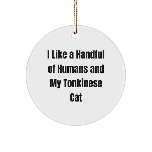 Fun Tonkinese Cat Lovers Gifts, I Like A Handful Of Humans And My Tonkinese Cat, Circle Ornament for Christmas